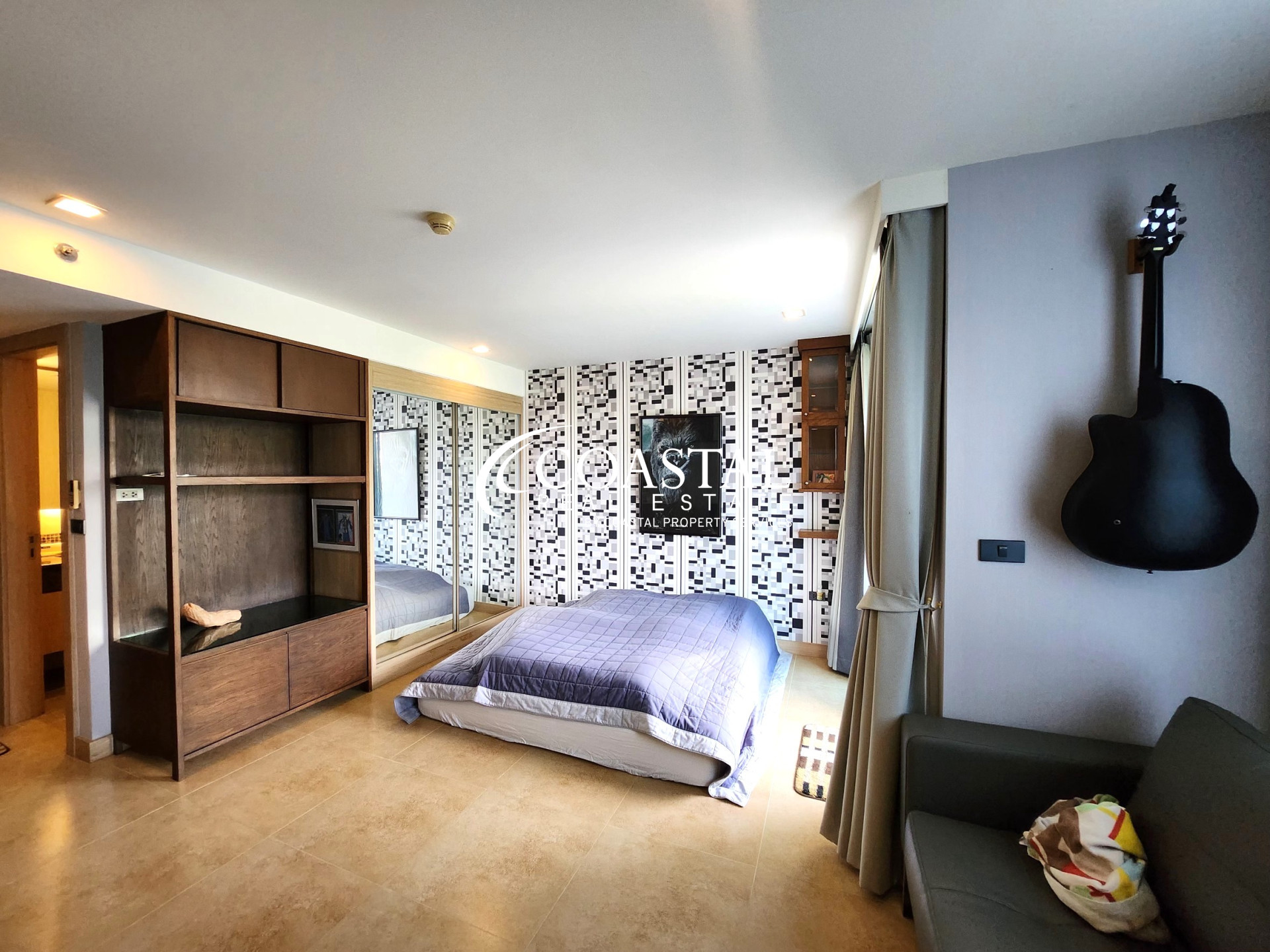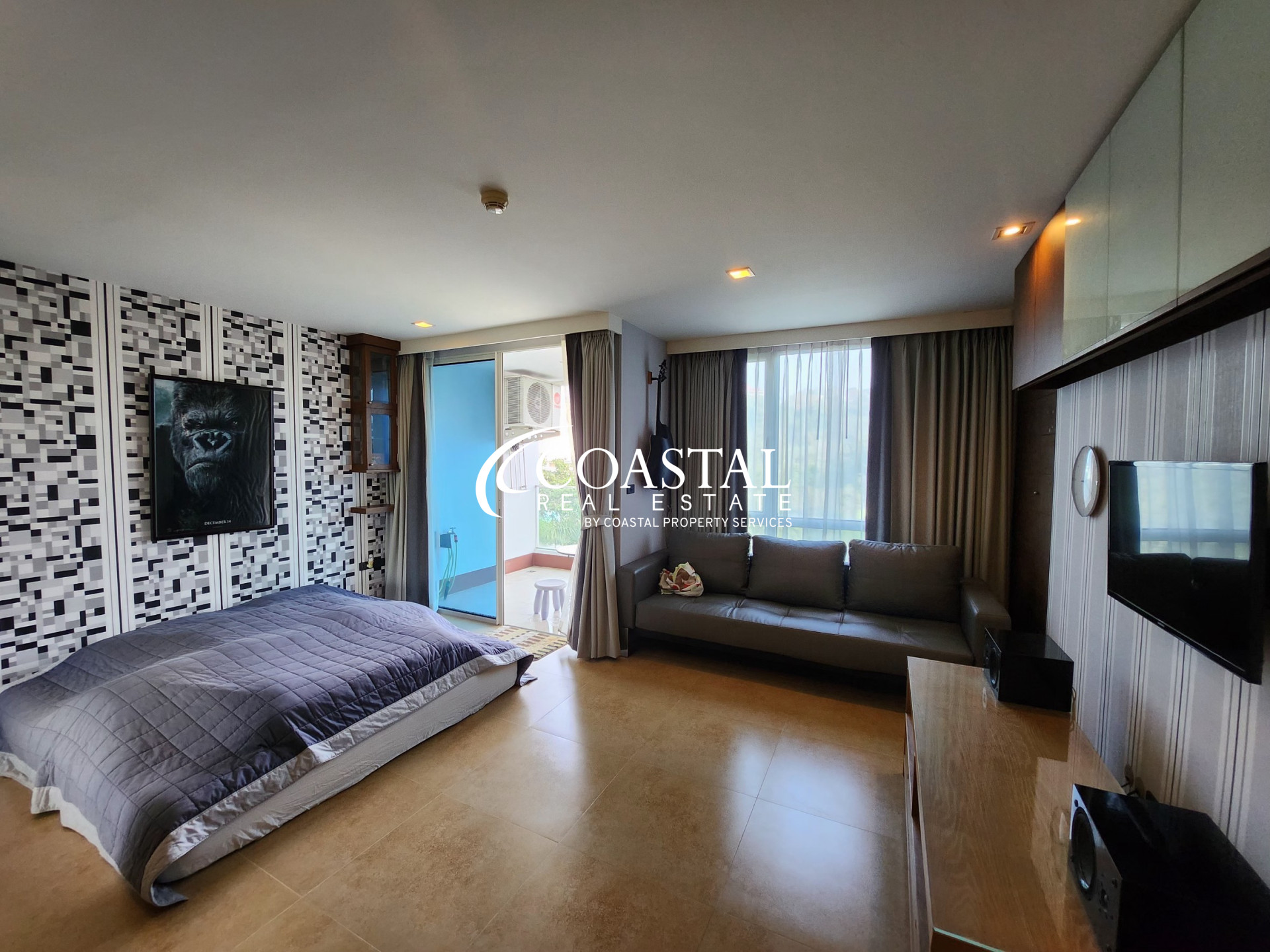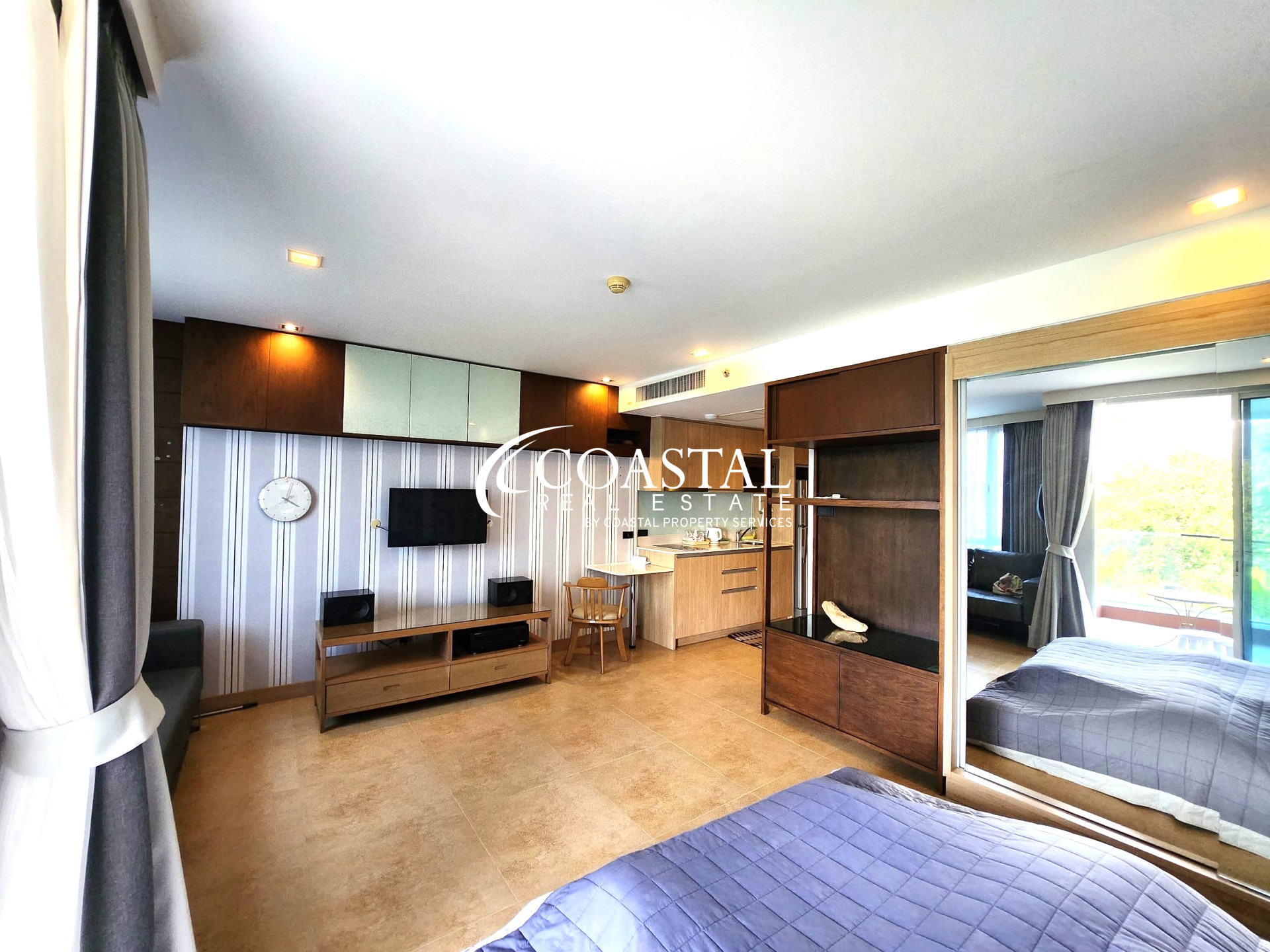 This charming corner unit studio condo at The Cliff in Pratumnak offers a comfortable and stylish living space, perfect for those seeking a modern lifestyle in a highly desirable location. Spanning 38.31 square meters, the unit boasts a bright and airy layout with ample natural light streaming through large windows.