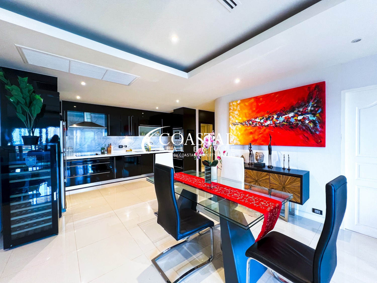 Spanning 142.84 square meters, this beautifully finished and fully furnished two-bedroom, two-bathroom condo at V.N. Residence 2 in Pratumnak offers a spacious and elegant living environment. The well-appointed European kitchen features ample counter space and modern appliances, seamlessly connecting to the open-plan living and dining area—perfect for entertaining or unwinding in comfort.