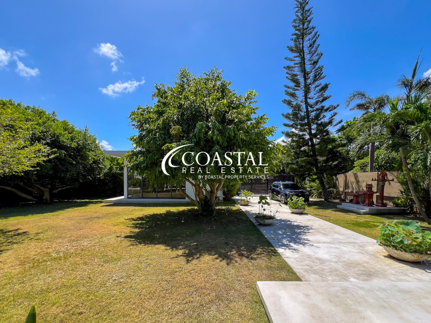 Situated on a generous 1 rai land plot, the property boasts a BBQ zone, a 12 x 8 meter swimming pool, lush gardens, and a home gym. Parking is convenient with spaces for two cars.